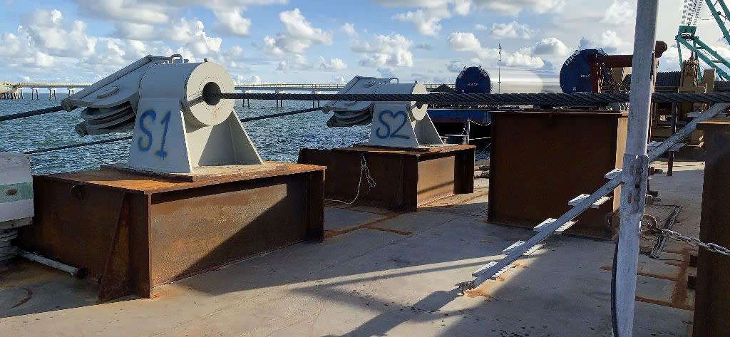 Hệ thống đi kèm đầy đủ: HPU diesel, dây cáp, fairlead, sheave, dynaline, phụ kiện nâng hạ.