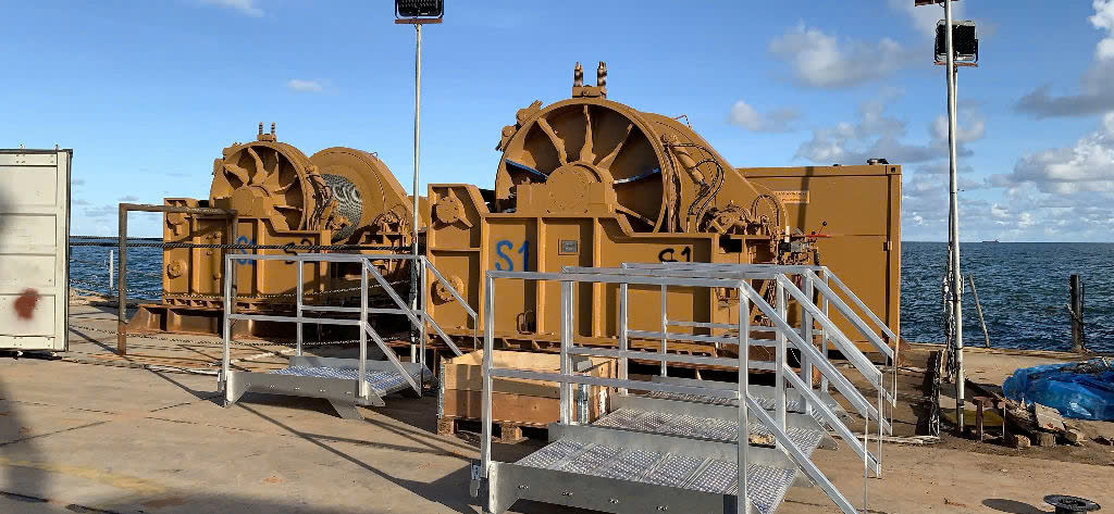 Chúng tôi cung cấp dịch vụ cho thuê winch thủy lực 85T kèm HPU diesel, dây cáp, fairlead, sheave và phụ kiện đi kèm, đáp ứng mọi nhu cầu kéo, nâng, vận chuyển hàng nặng hoặc triển khai công trình trên biển và đất liền.